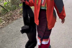 工作人员暖心护送,白眉长臂猿一路鸣叫回应